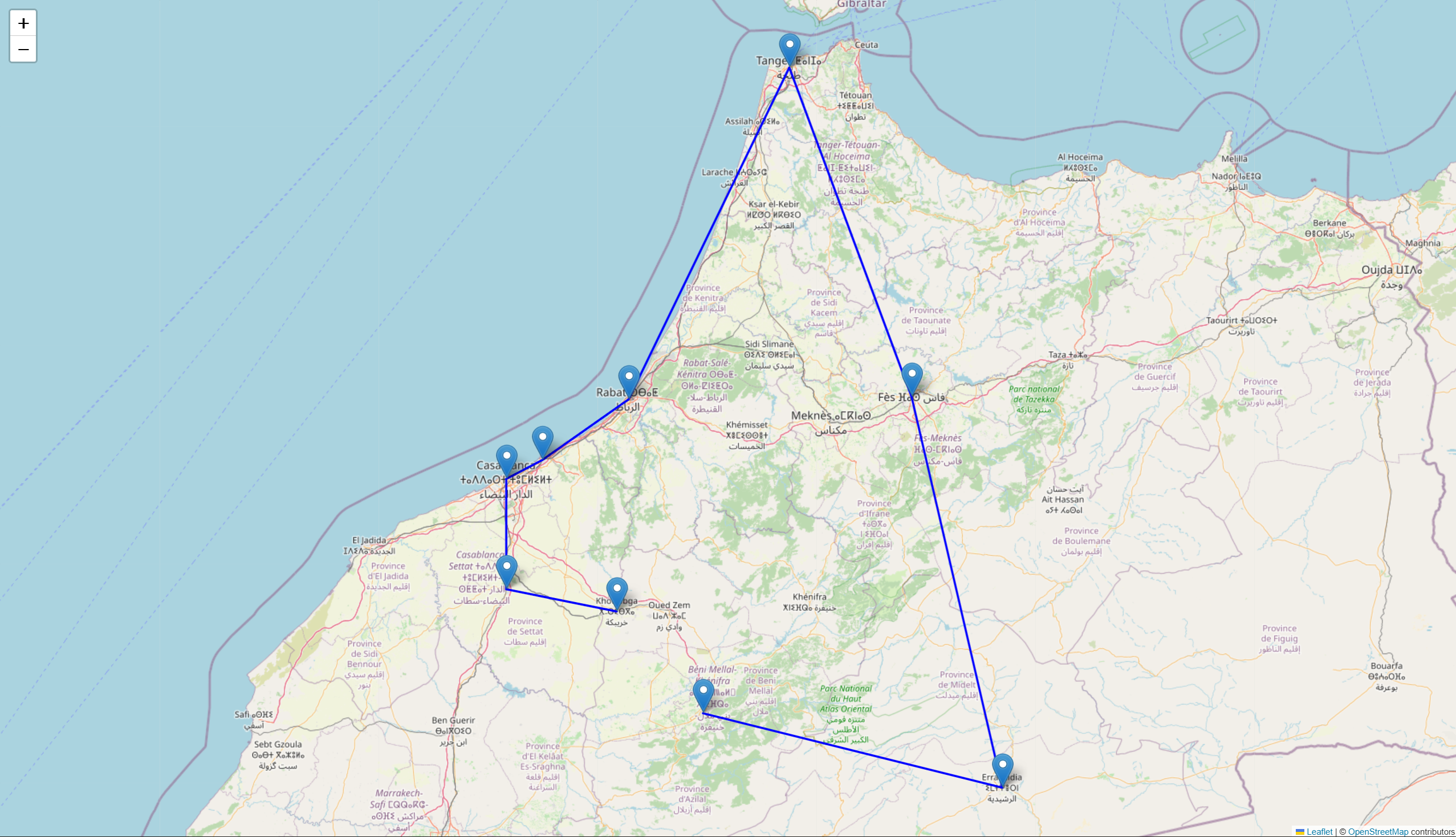 This project uses a Genetic Algorithm to solve a TSP instance for the following Moroccan cities: